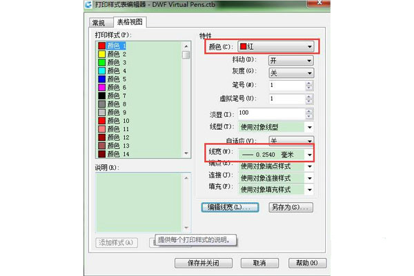 2、选择新建可以新建一个pcp或者ctb打印样式。也可以自行设置打印样式或调整打印样式表参数。在打印样式对话框中可设置相关参数,如颜色、线宽等。