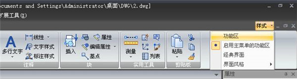 2、选择“启用主菜单的功能区”,可切换到带主菜单的Ribbon界面。