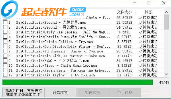 7、也能勾选列表上需要转换的NCM文件,可以不勾选部分歌曲