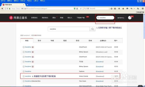 3.在搜索栏输入要下载的歌曲名称,根据歌手选择要下载的歌曲。