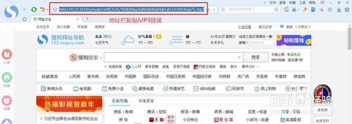 7.打开搜狗浏览器或UC浏览器,或其他浏览器,黏贴MP3链接至地址栏。