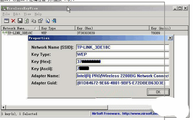 在wirelesskeyview中双击获取的密码选项,就会出现密码详细属性显示窗口,该窗口中的就是属性值,可以直接复制的。