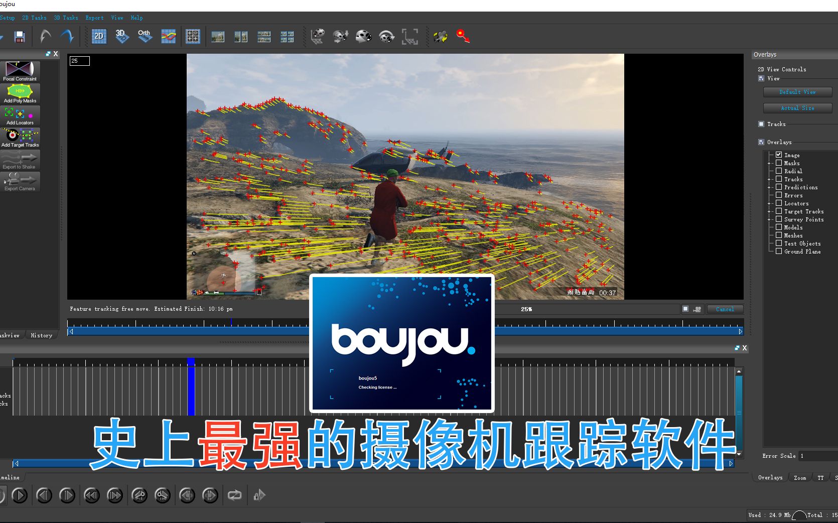 Boujou,摄像机跟踪软件——电影特效的幕后英雄。Boujou提供一套标准的摄像机路径跟踪的解决方案,曾经获得艾美奖的殊荣。