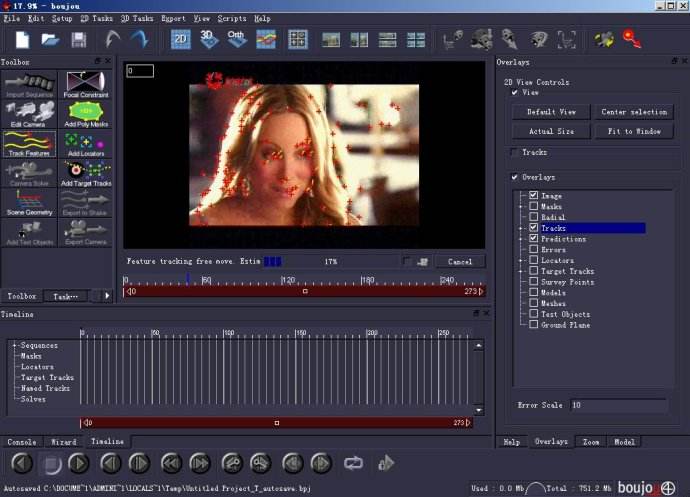 以前版本的boujou考虑到之前推出的一系列解决整个拍摄。 boujou 5看在一次单一的框架,使用户可以根据需要进行干预,使整个过程速度明显加快。