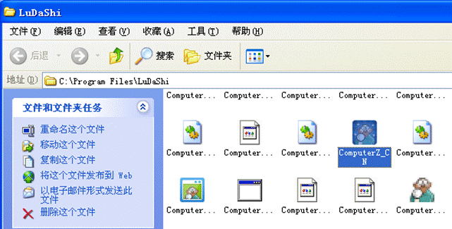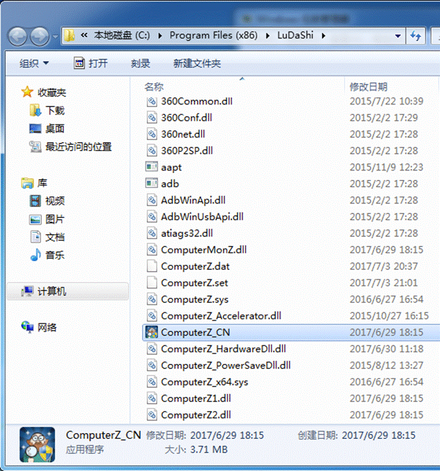 5、此时就会打开你正在运行的鲁大师程序,所处的位置,并自动选中了 ComputerZ_CN.exe(部分系统可能会没有结尾的.exe字样) 文件:
