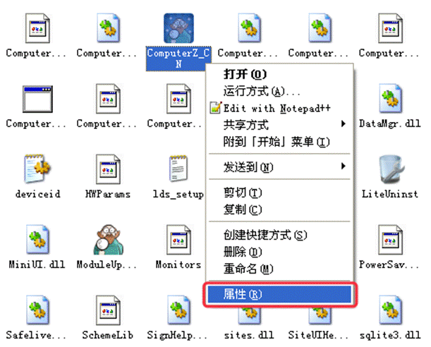 6、右键点击被自动选中的“ComputerZ_CN” 或 “ComputerZ_CN.exe”,选择“属性”,如下图所示: