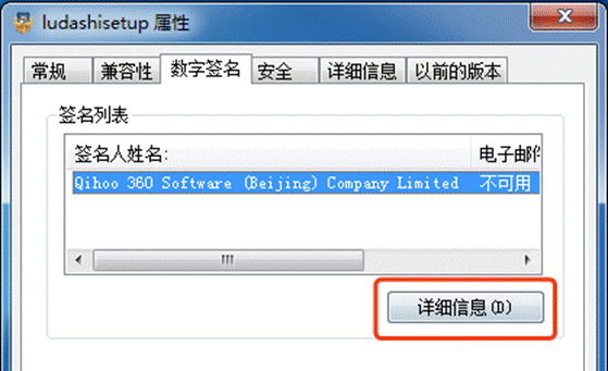 注意:如果看不到“数字签名”页面的话,那么可能下载到了被恶意篡改的鲁大师,需要提高警惕