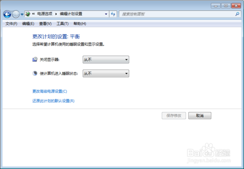 这是“平衡”方案里的两项基本设置,都设置成“从不”。