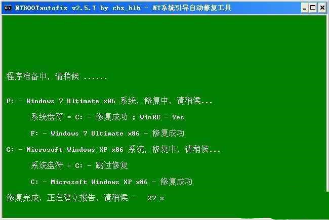 第3步: 程序会自动识别电脑里的多个系统,并自动进行引导的修复操作,我们只需要等待一下。