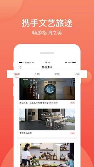格调生活——用户之美“生活之美”作为格调乐家品牌传播理念,以“家居生活”为延伸,建立格调生活自媒体内容服务体系,分设有“活动”、“人物”、“文旅”、“公益”等板块,联合自媒体创作者,提供最具格调、最新鲜、最前沿的品牌内容作为平台开放的服务端口,让更多懂生活、爱生活的人群进入。