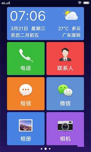 专为爸妈设计的桌面,大字体、大图标,大色块,无论短信、通讯录一律超大,让爸妈扔掉老花镜。