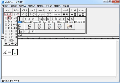 1.打开软件后,在MathType括号模板中选择方括号模板。