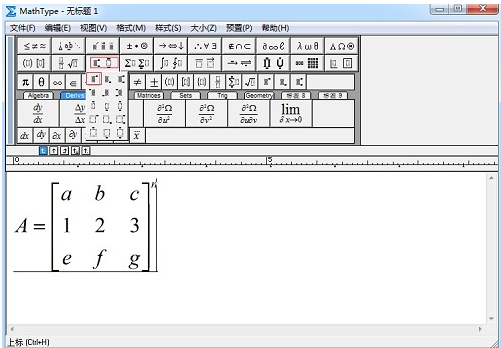 3.将光标放在括号外面,选择MathType上标模板,输入字母n,n阶矩阵就输入完成了。