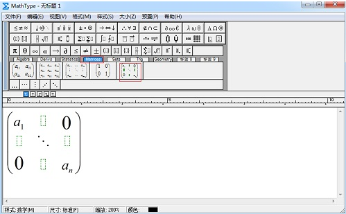 1.打开MathType软件后,在矩阵标签下选择已经保存的模板输入。
