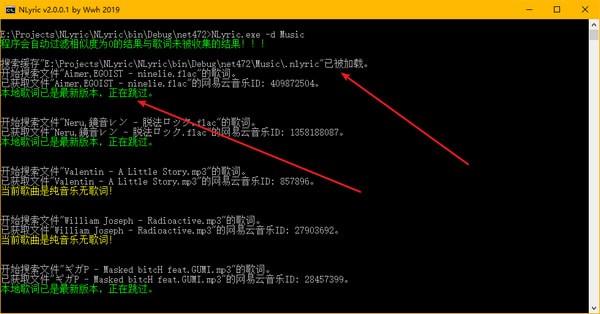 3、输入命令"NLyric.exe -d 音乐文件夹"