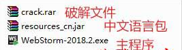 1、首先从本站进行下载解压,得到jetbrains webstorm 2018.2主程序,破解文件和中文语言包;