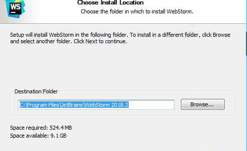 2、运行“WebStorm-2018.2.exe”开始安装,默认安装目录【C:\Program Files\JetBrains\WebStorm 2018.2】
