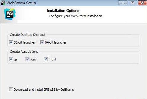 3、勾选创建webstorm 2018.2桌面快捷方式,包括32位和64位,以及自行选择关联文件格式,建议全选;