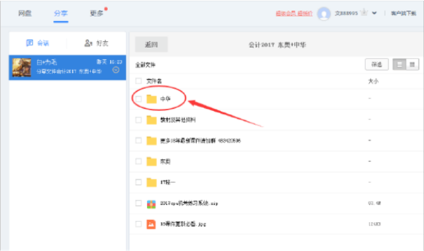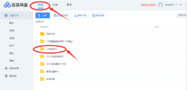 第一步:点击网盘按钮,找到新建的文件夹,单击打开。