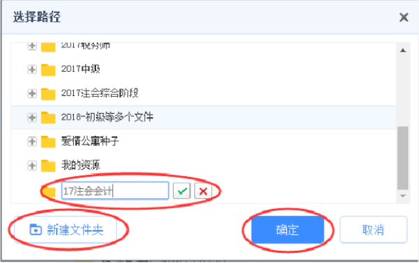 第七步:点击“新建文件夹”按钮,自行命名文件夹,点击确定:
