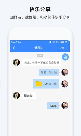 添加好友,创建群组,闺蜜群、聚会群、班级群,工作群等,一人分享,全群共享。