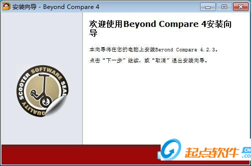 我们进入到Beyond Compare安装向导。这个向导将指引你完成Beyond Compare的安装进程。在开始安装之前,建议先关闭其他所有应用程序。这将允许“安装程序”更新指定的系统文件,而不需要重新启动你的计算机。单击 [下一步] 继续;