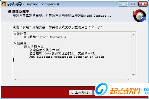 这一步是正式安装Beyond Compare前的最后一个确认步骤,确认安装路径和附加任务无误后,就可以点击[安装]将Beyond Compare安装到电脑上;