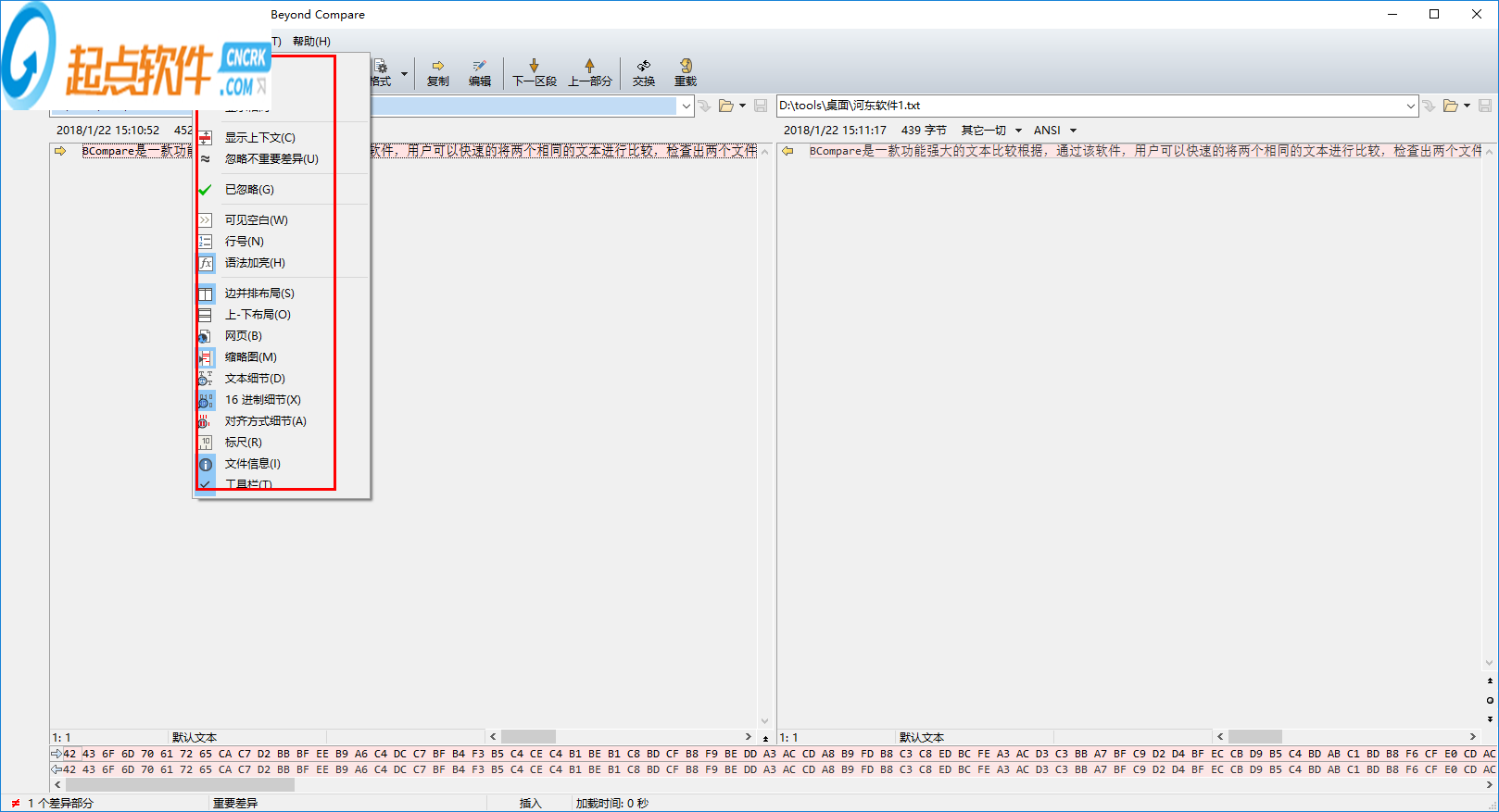 4.细致、人性化的对比使用界面:支持自定义编辑查看方式;支持多功能处理比较后的文件。