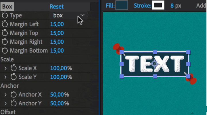 Pins Boxes是一款在AE上比较常用的脚本工具,我们可以在软件安装在AE上进行使用。这款软件是专门用来进行区域框的设置,你可以将区域框进行固定,然后在框里填写文字,区域框会随着文字增多而自动调整大小。