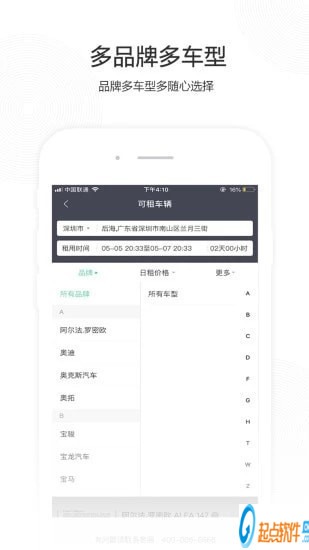 3、智能用车,舒适体验预估车费:选取车型并填写取还车地点,系统依据道路实时状况给出用车费用,同时显示其他出行方式费用,方便用户比价。