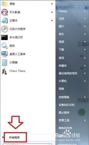 1、打开方式:开始(或按Windows键),选择所有程序。