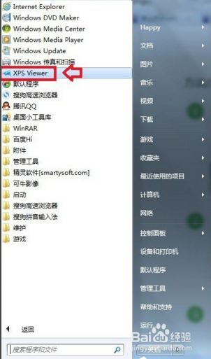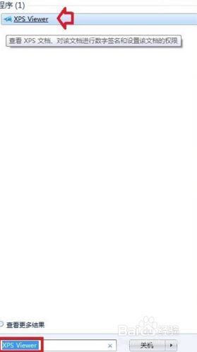 3、或者在开始菜单的搜索框内输入关键词:XPS Viewer操作系统就能自动搜索到,点击它就能打开XPS阅读器。