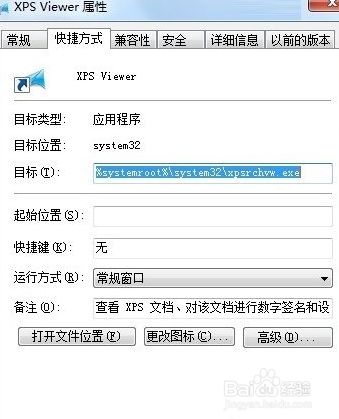 4、右键点击XPS Viewer目标:%systemroot%\system32\xpsrchvw.exe 拉蓝复制(Ctrl+C)