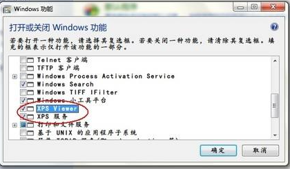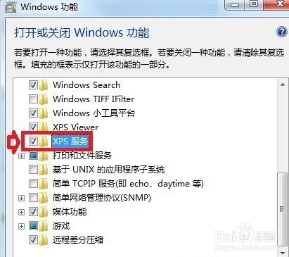 8、打开或关闭Windows功能——勾选XPS服务(如果不需要,去掉选中)——确定。