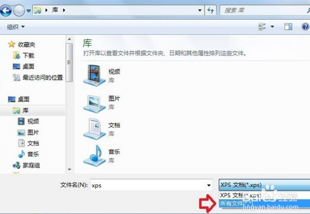 10、可以打开专用的XPS文件,也可以点选打开所有文件(并不是所有文件都能打开)。