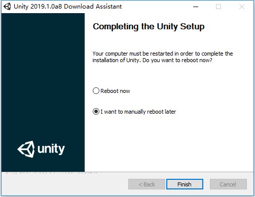 Unity3d 2019安装完毕后,点击Finish