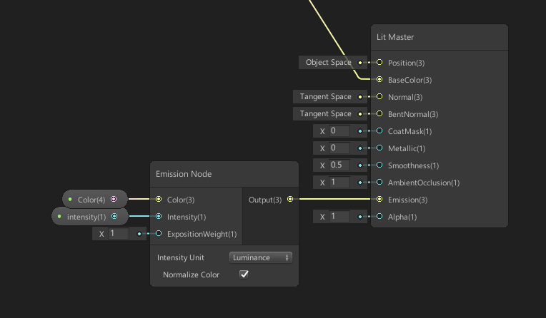 Lit/Unlit着色器和Lit/Unlit Master Node上的Emissive属性经过改进,支持EV100和光亮度单位,提供额外的Exposure Weight控制和Emission节点。这项控制可以强制对象产生泛光效果,即使处于正确曝光下,例如:使对象在明亮的日光下产生泛光。