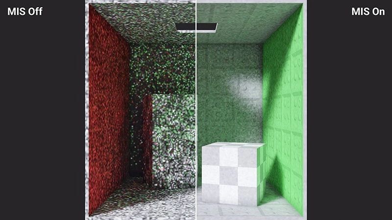 MIS Environment是一种对Cubemap /HDRI中最重要区域进行采样的新方法。这项技术会避免发射大量GI光线到半球体,把光线聚焦于重要区域,例如:太阳明亮的位置。