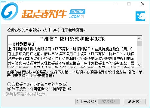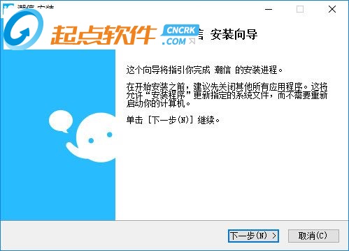 1、在起点软件园下载潮信电脑版安装包,并解压,双击启动exe程序,点击下一步安装