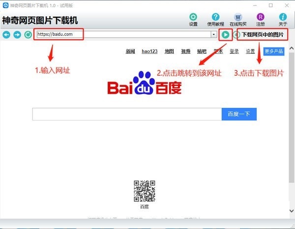 打开软件,输入你想要下载的图片所属的网站地址,以百度首页为例,如图: