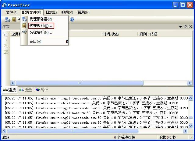 1) 在Proxifier的“配置文件”菜单上,单击“代理规则”选项。