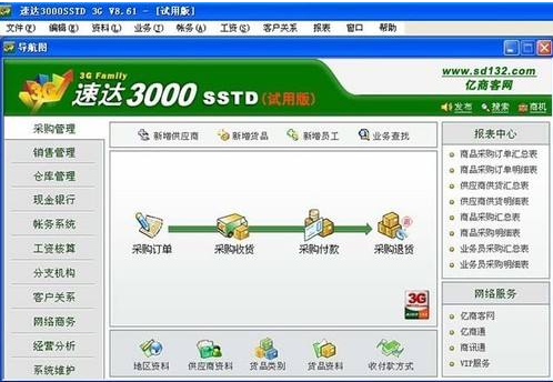 速达3000XP系列软件集进货、销售、仓库、现金银行、帐务、固定资产、人事工资诸多管理功能于一身,进销存与帐务实现一体化的链接。