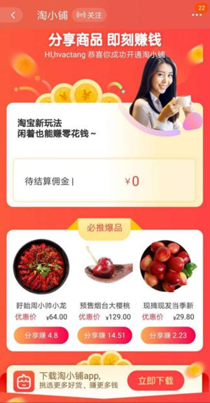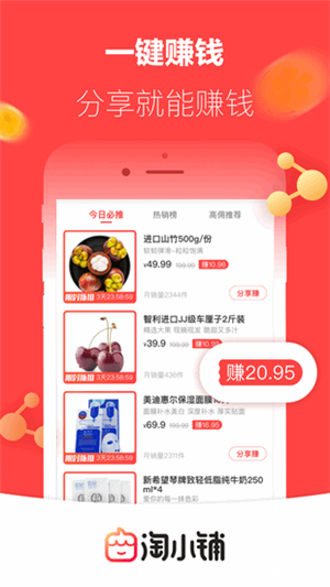 淘小铺是淘宝旗下新推出的一款以分享赚钱为核心内容的移动端电商平台,淘小铺app具有高利润、高重购、高认知和低门槛四个特性,可为使用者实现良好的经济收益,新手用户只要拥有淘宝账号,便可免费入驻小铺成为掌柜。在这里你可以轻松管理店铺,随时随地发布更新商品,并且将活动商品分享推荐给其他人,还可获得现金红包,同时购物成功即可获取现金额度,买的多,赚的多。