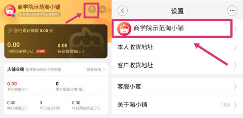 2、在设置中心,可以修改淘小铺头像、淘小铺名称、掌柜介绍等内容。