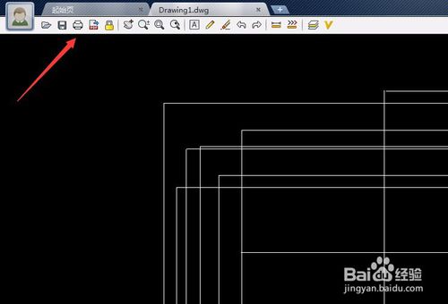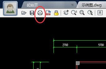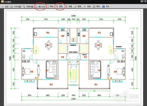 3、打开图纸之后,我们因为要打印嘛,直接点击打印工具按钮,会出现一个预览状态的打印结果,我们就可以根据显示进行调整