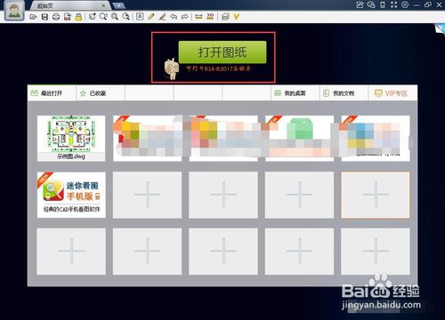 2、我们首先点击“打开”会弹出一个打开对话框,打开我们需要打印的图片,也可以直接在桌面点开要打印的图片 打开方式选择 CAD迷你看图