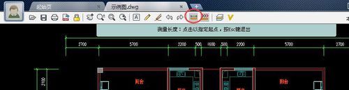 4、简单测量,点测量长度工具,点击一下,提示点击以指定起点,意思就是点击起点至终点再点击鼠标一次,尺寸就出来了