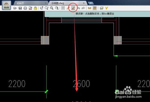 7、橡皮擦工具,点击该工具后,点击哪条线,哪条线就会被擦掉,不使用了就按ESC退出