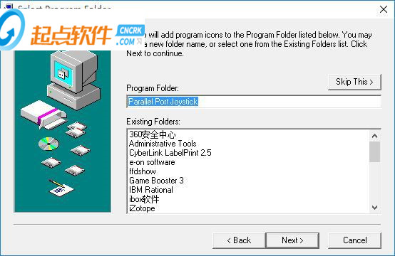 4、设置好所需安装内容后,单击“下一步”按钮,弹出设置程序文件夹操作界面。系统默认的程序文件夹是“Parallel Port Joystick”在一般情况下不需要做任何修改。