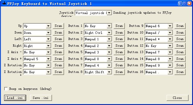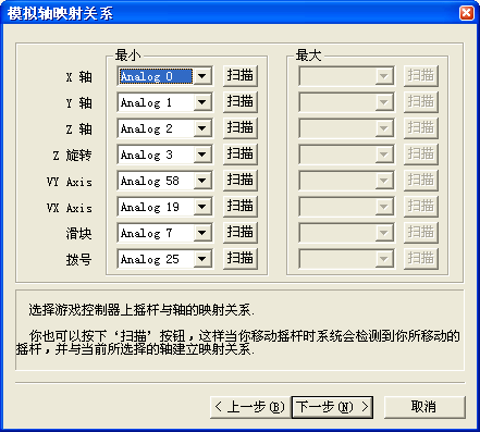 下一步 完成 再完成然后打开开始菜单里的PPJoyKey来设置键位 这四个键位 从上到下是右摇杆的上下左右